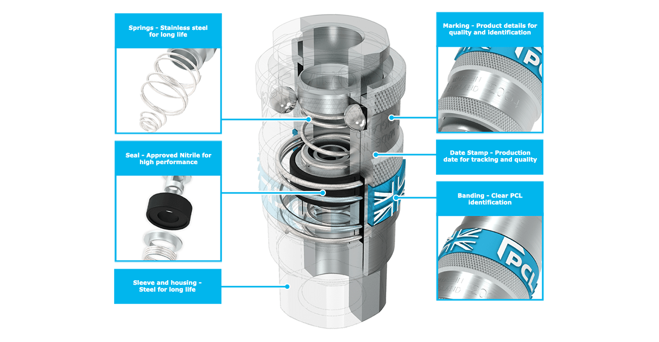 Used across most industries including industrial and automotive, our blue band PCL couplings are a sign of quality and longevity.